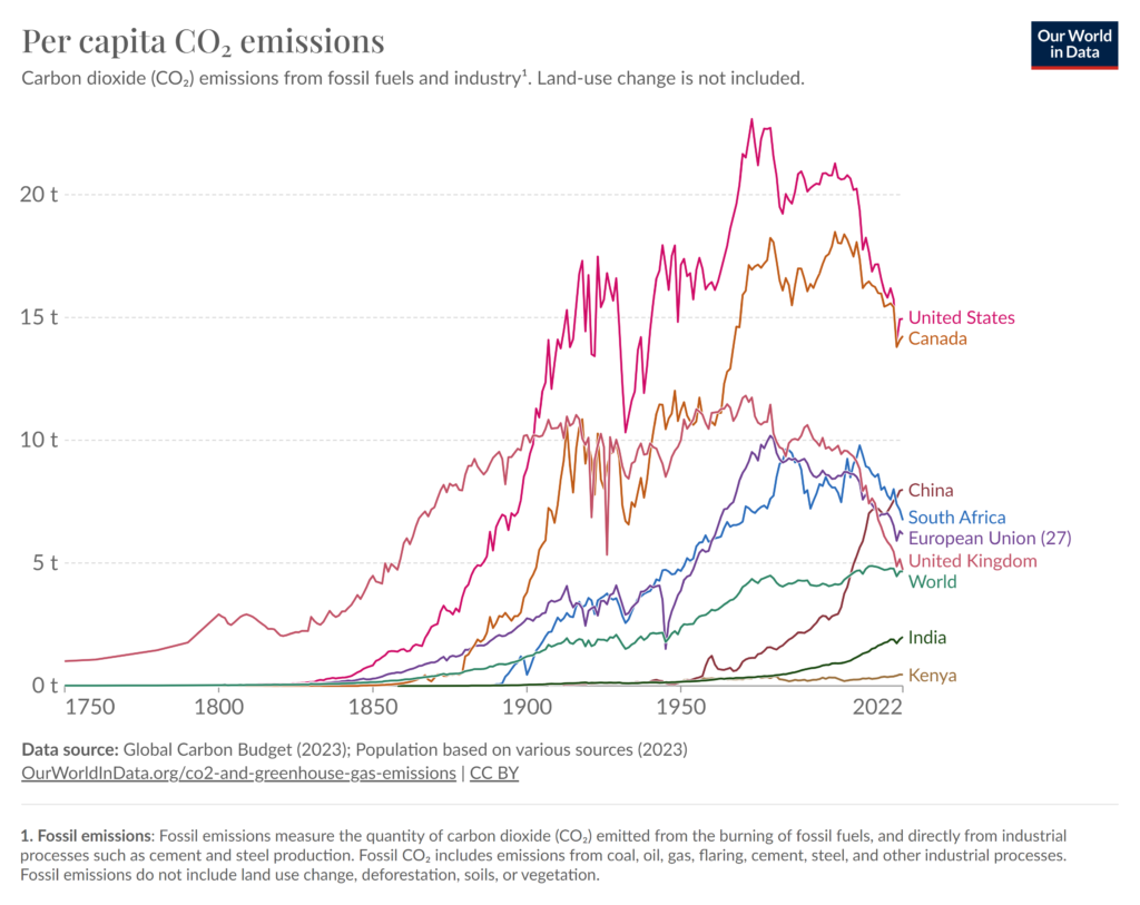 A different way to gain perspective on the scale of emissions is to think on a per capita basis.
