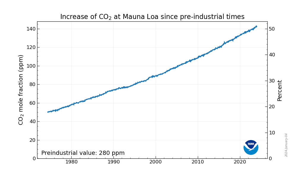 The trend (source) is of course alarming, and its effect on atmospheric CO2 (source) clear.